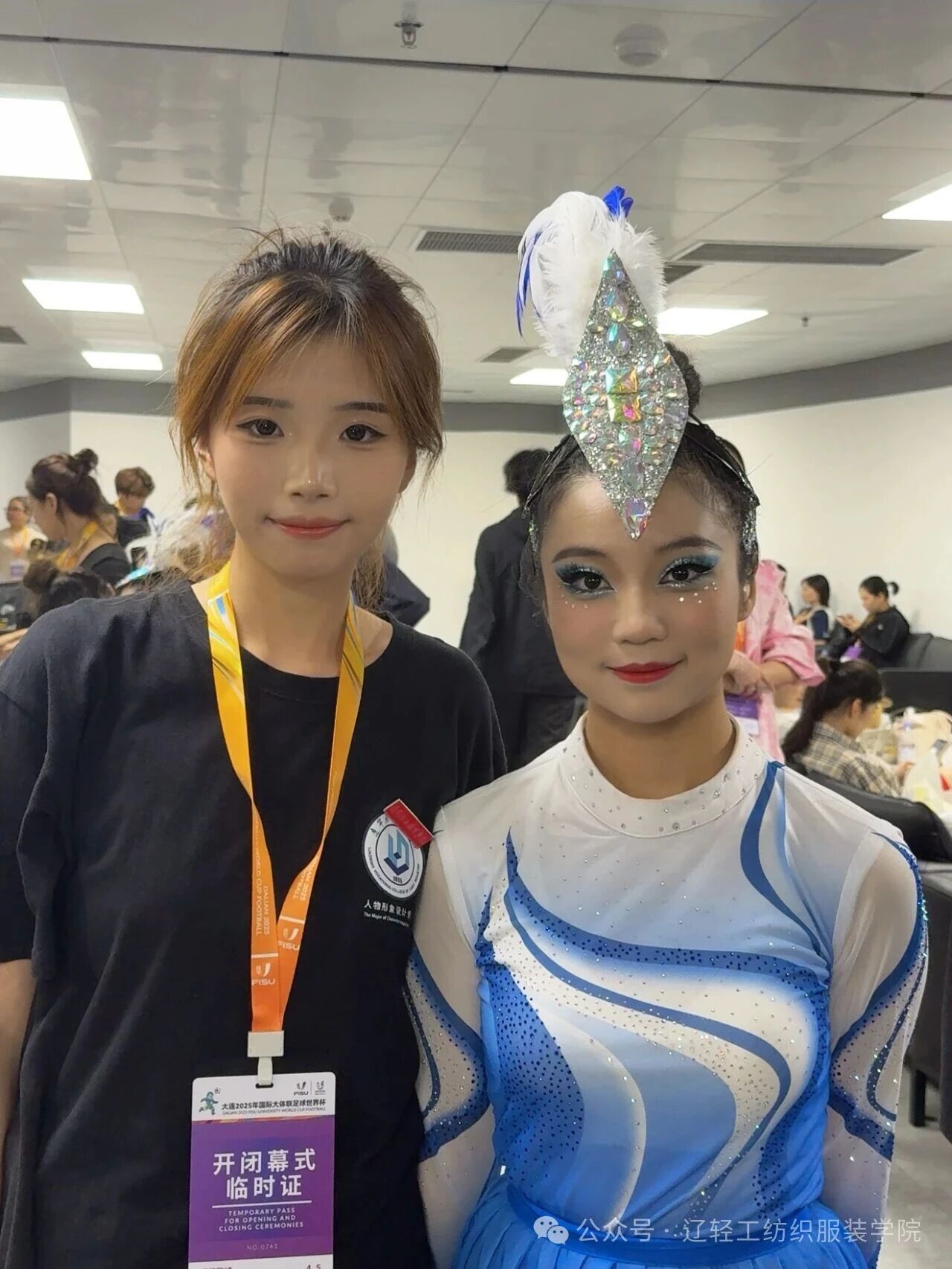 在近日盛大举行的大连2025年国际大体联足球世界杯中,纺织服装学院人物形象设计专业师生团队交出了一份亮眼答卷 —— 全程为联赛开幕与闭幕仪式提供化妆服务,服务人次累计超过600人,以专业实力为这一高规格国际体育盛会保驾护航。