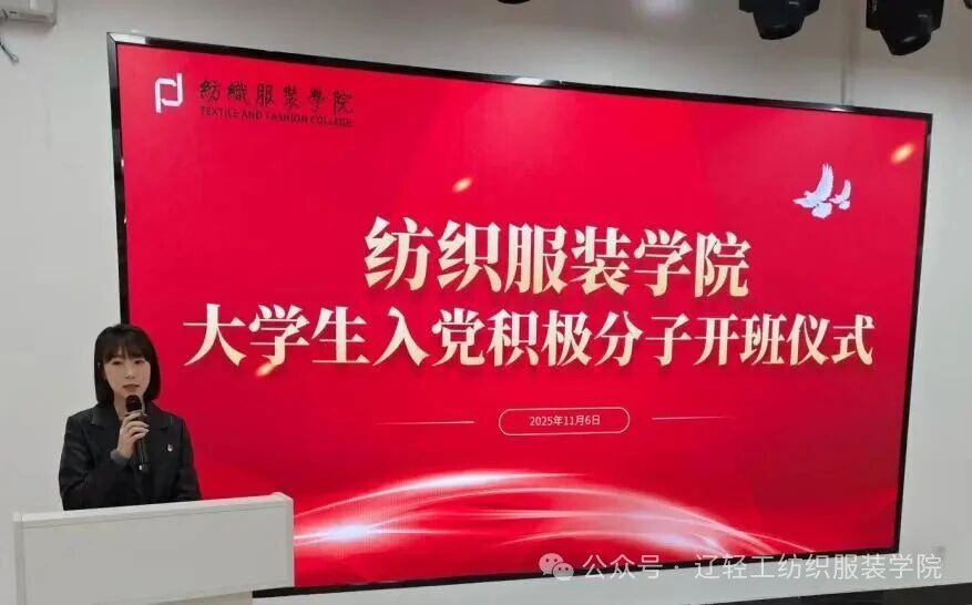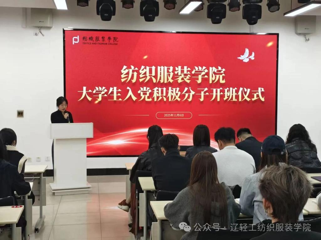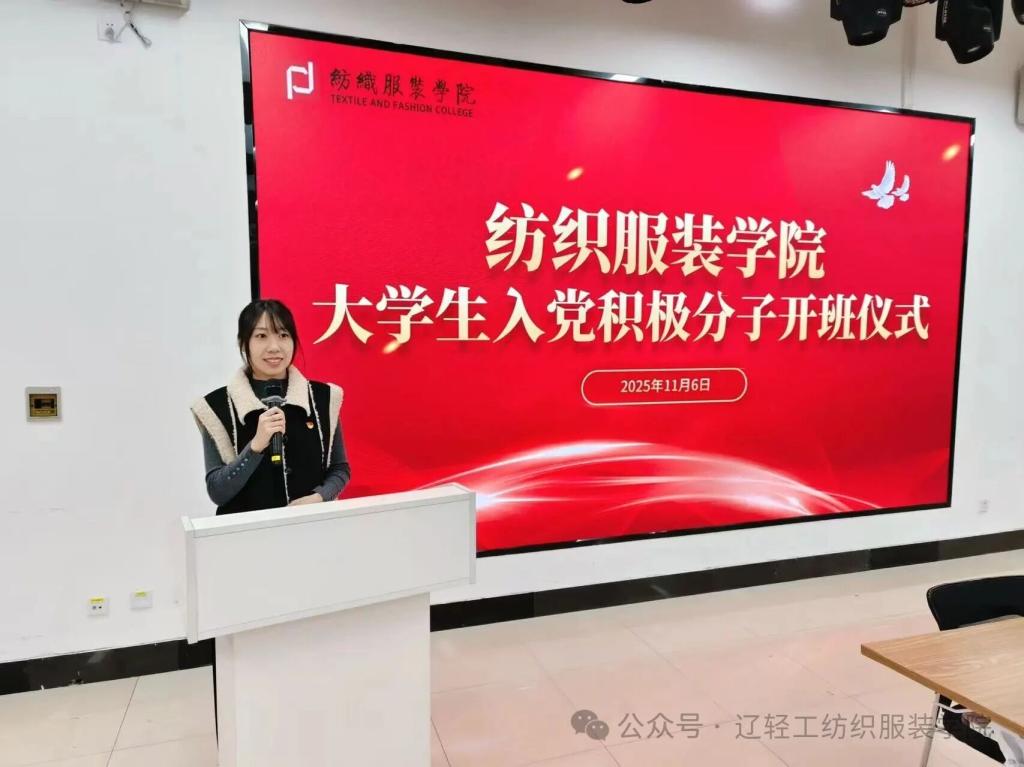 红色信仰凝聚青春力量,初心使命指引前行方向。为深入学习贯彻习近平新时代中国特色社会主义思想,进一步引导积极分子坚定理想信念,端正入党动机。纺织服装学院党总支于2025年11月6日举行大学生入党积极分子开班仪式,出席本次仪式的老师有纺织服装党总支书记徐曼曼、党总支副书记郑琳、2025级入党积极分子培养联系人,本次仪式由组织员于嘉欣主持。