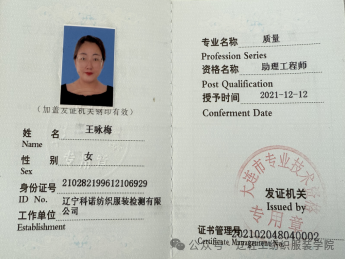 杨雪 纺织服装学院·纺织品检验与贸易2017级学生