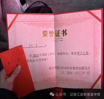 荣获2018学年全国外贸从业能力大赛秋季赛一等奖;2018学年国际贸易实务操作大赛秋季赛一等奖;2023荣获企业明日之星称号;2024年企业青年标兵称号;2024年成为销售经理并带领团队完成全年目标等等。